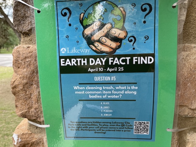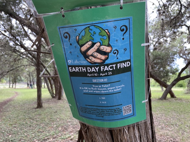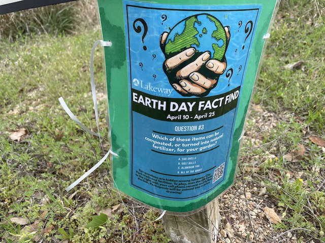 From April 10 – April 25, ten Earth Day-themed questions will be hidden in Lakeway City Park.