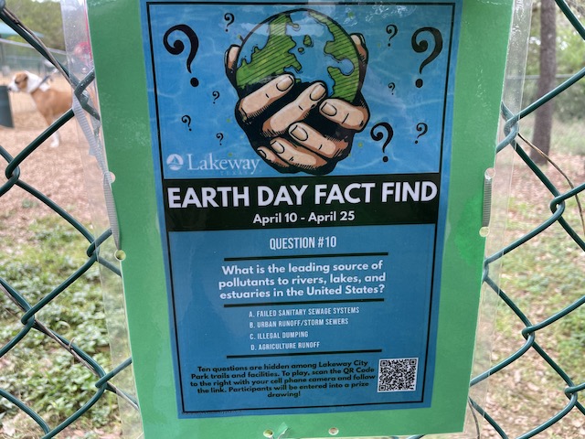 From April 10 – April 25, ten Earth Day-themed questions will be hidden in Lakeway City Park.
