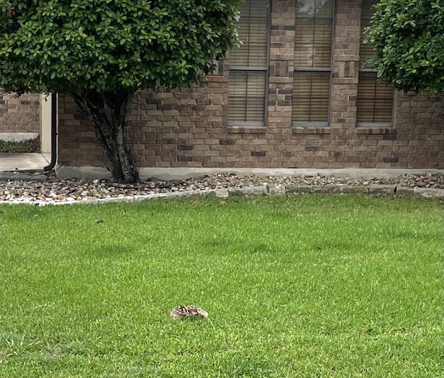 Speaking of fawn, here’s one that has been parked by its mother. This is usually okay, but the mom parked this little one on the front lawn in full view of everyone passing.
