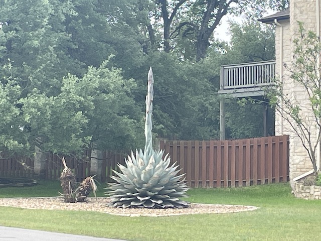 Here is beautiful artichoke agave that, because of the spring freeze, is shooting up a flower. This is usually before dying.