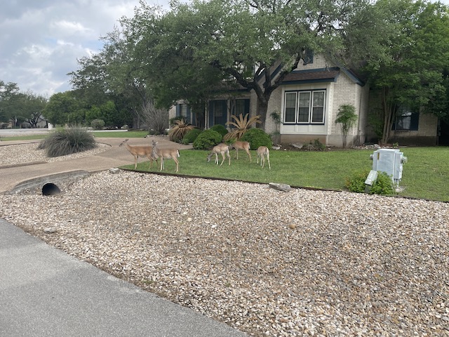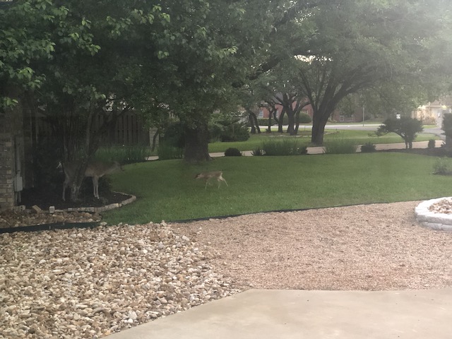 I still can’t get over the number of deer you have — and how wonderful to add that fawn to the herd. Another Austin friend found a fawn a few days back, plunked down in full view of everyone. His theory is that the deer have been around so long that they’ve learned they’re safe. I presume dogs are leashed there, and coyotes aren’t a problem.