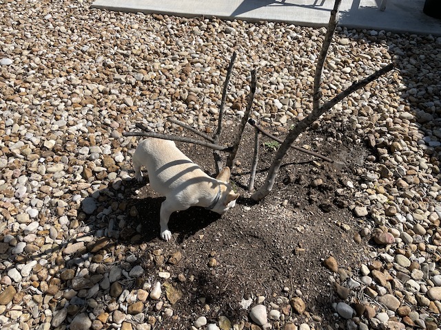 Nothing gets past these two. 😂 Hope your olive tree thrives once it lands in its new spot, John.