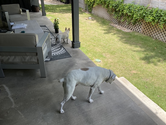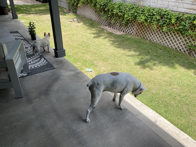 Twiggy has the right idea – stay in the shade of the patio. That’s what I do even though I have old bones. Stay cool, John. It is almost Friday!