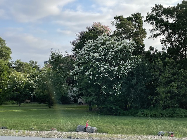The crape myrtles are so lovely. I guess the trick is to plants things the deer don’t like or something that is too high for them to reach. My daughter has a deer problem on her island and has trouble growing a garden. They love her vege plants.