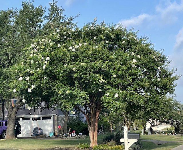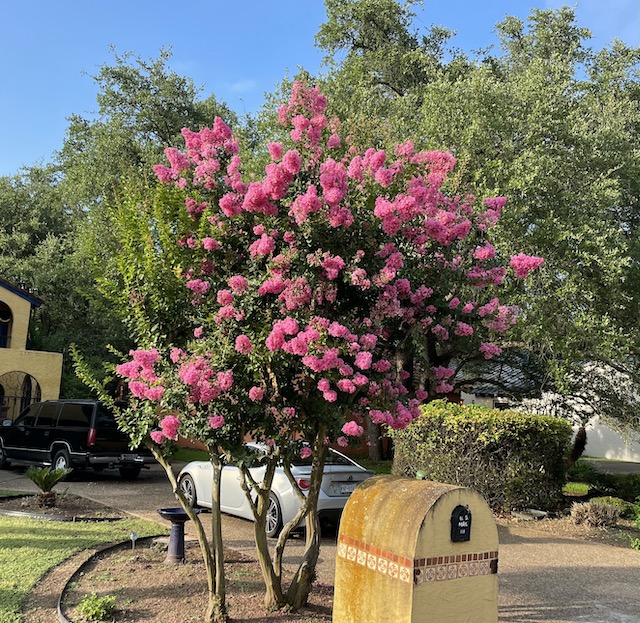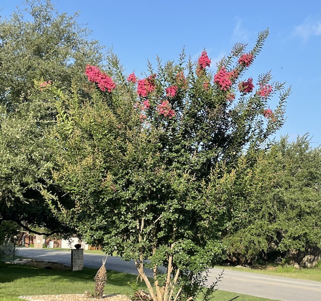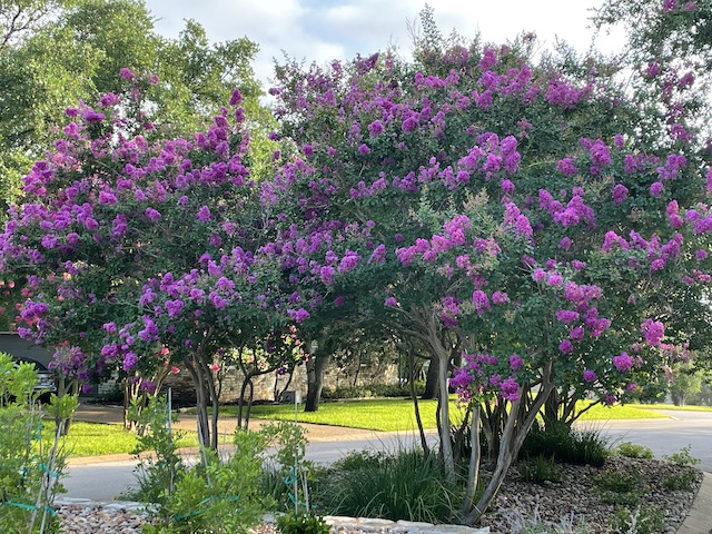 Ooooh, glad I stopped by, even late! Crepe myrtles are one of my favorite trees. And happily, in Texas you apparently don’t commit Crepe murder, which is a crime that began in Florida some decades ago, causing people to think if you cut the top of the tree back to NUBS every year, you’ll get more flowers. (I hope the originator of this theory is languishing in gardener prison somewhere, as now all you see in most yards and medians is something that looks rather like giant technicolored broccoli–all heavy stem with tiny little top of pink or lavender flowers!) 😲😖