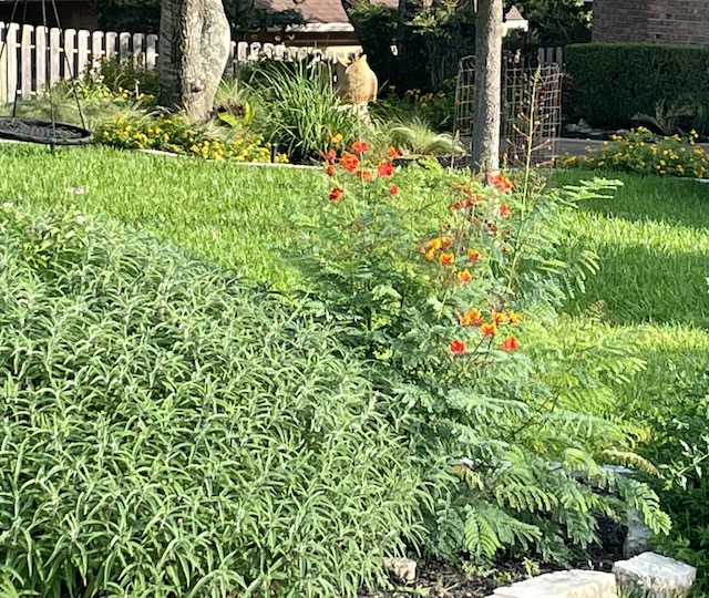 Great color in the neighborhood! All of the crepe myrtles around here are blooming better than ever. The freeze did not seem to bother them or roses. Orange and grapefruit trees did not survive. I would have thought deer would love vincas – impressive display in that yard.