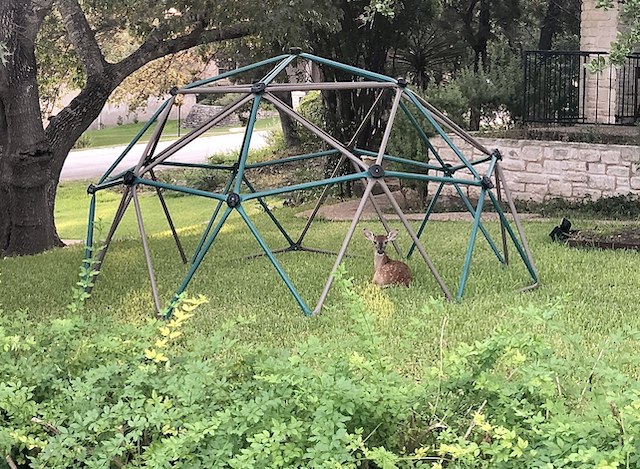 Happy Sunday, John. I love your photo of the little deer under the geodome. How darling! It brought more than a few smiles, as did some of the chairs. I’d be glad to toss mine as well, but our furniture hasn’t arrived yet and sitting on the floor requires getting back up. 😁