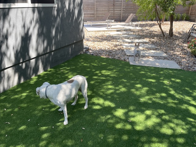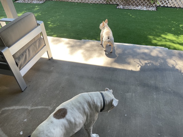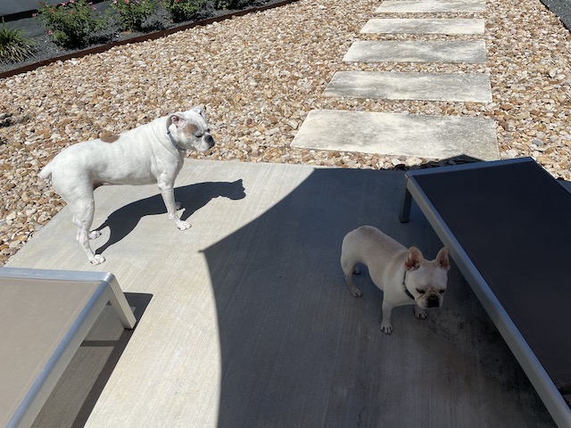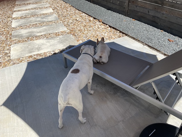 Did you get some cooler weather after Nicholas blew through?? Looks like Twiggy and Lucy are enjoying their backyard. I’d be tempted to join them under that shady umbrella, too!