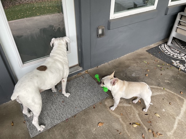These two always brighten the day! BTW, your yard looks lovely. Our temps have dipped mightily (currently 15 degrees), and with the chill, the vegetation is laced with ice (at best). I think it might be a long winter. ❄⛄❄