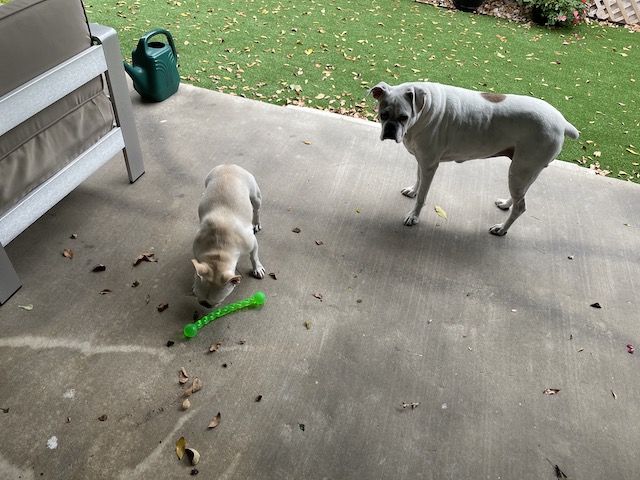 It was bought for Twiggy. She loves big dog toys. Twiggy is the one who plays with toys. Lucy doesn’t much care for them anymore. A bacon flavor slipper would be terrific. Thanks for the comments, Resa.