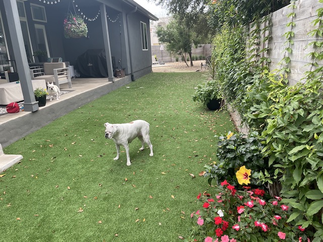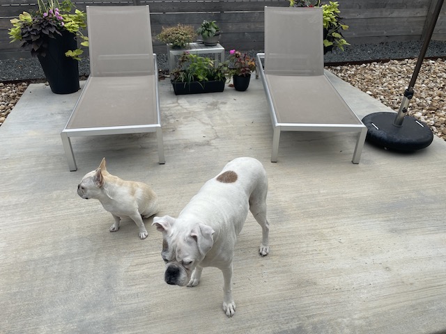 The UPS person would be lost without dogs showing him/her the way, lol. Love your flowers and vines, they’re doing great!