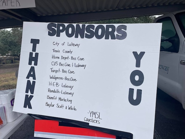 We are heading to the Justice Center in Lakeway to witness a give-a-way conducted there. As most of you know, Texas was hard hit last February with freezing temperatures which caused power loss and dangerous conditions. The Young Men’s Service League, which is made up of Lake Travis High School (in Lakeway) students, collected items to be given away to help folks prepare for these conditions should such an event happen again. We want to see this in action. We are being catered by El Naranjo of Austin. Our entertainment is James Taylor.