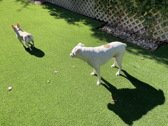 I like the non-aerobic way they play tag. Dogs like everything to be just so in their yards. Ours sniffs everything when it’s covered in snow and then sniffs it again when the snow melts.