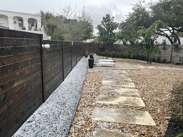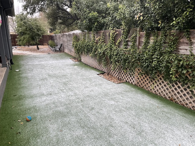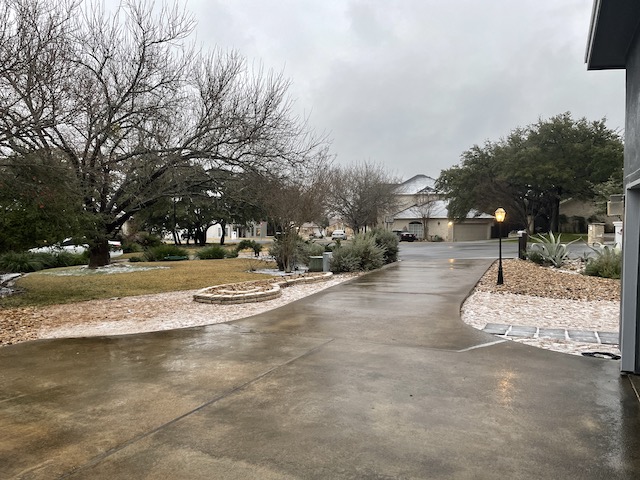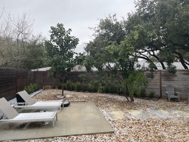 The patio area is covered. You can see the frozen sleet in the blackstone bed to the left.