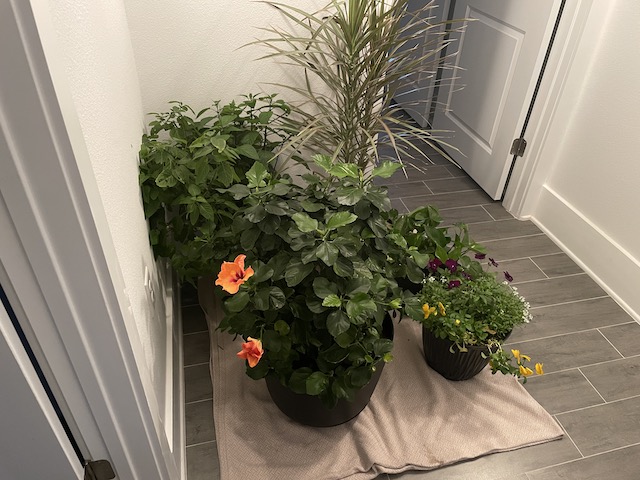 I’m so glad you were able to get the plants inside that needed to be protected from the weather and that the hanging basket is protected by the towel. I hope all of the other (outside plants) come back without problem. Stay safe and warm down there. Hopefully, this was the last storm of the season!