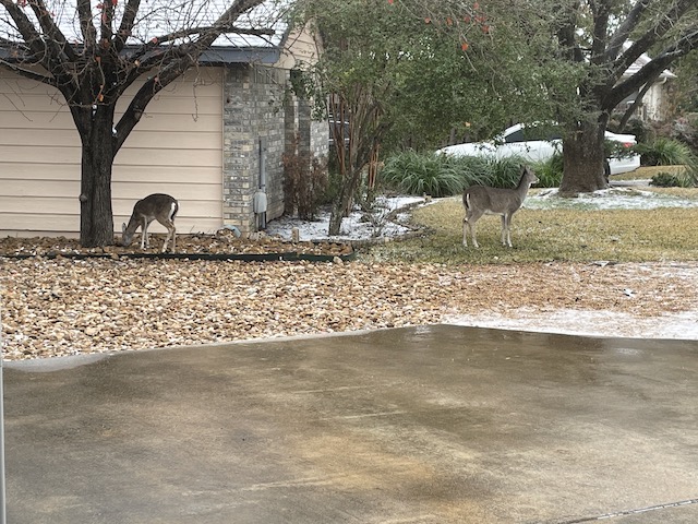 I thought of you when word of the Austin boil water order started circulating. I’m thinking you might not be on the Austin system. Having to boil water after escaping a power outage is insult after no-injury. We missed out on most icing, and by the end of today, it seems most of it north of us will be gone, too. I’ll be hauling my plants out later. They could have gone out yesterday, but I decided to clean the patio before taking on that little chore.