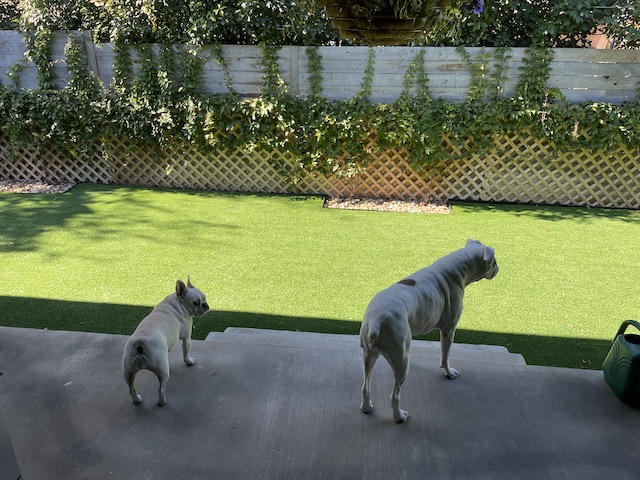 While you were away I detailed the fact that I ripped up the grass and installed dog friendly artificial turf. 😁 Yes it is green. 🤣