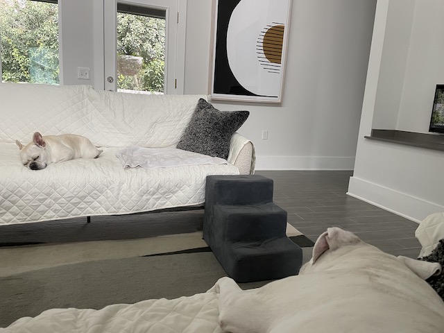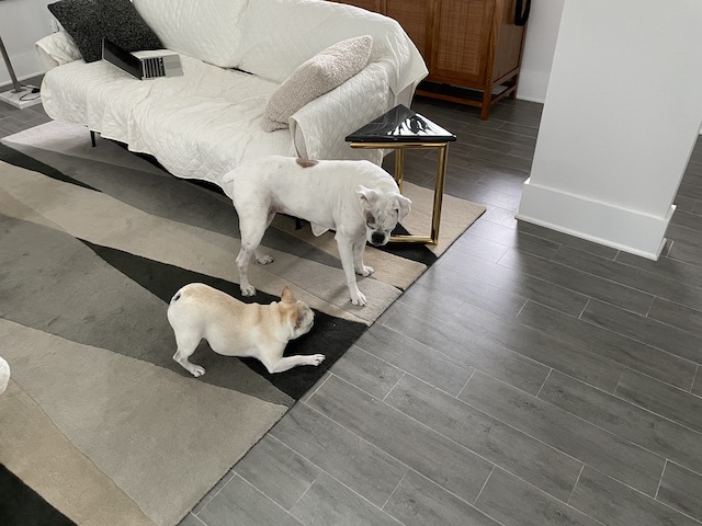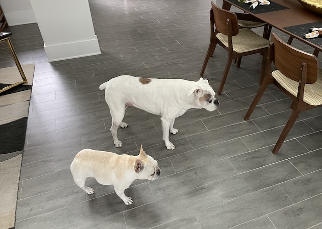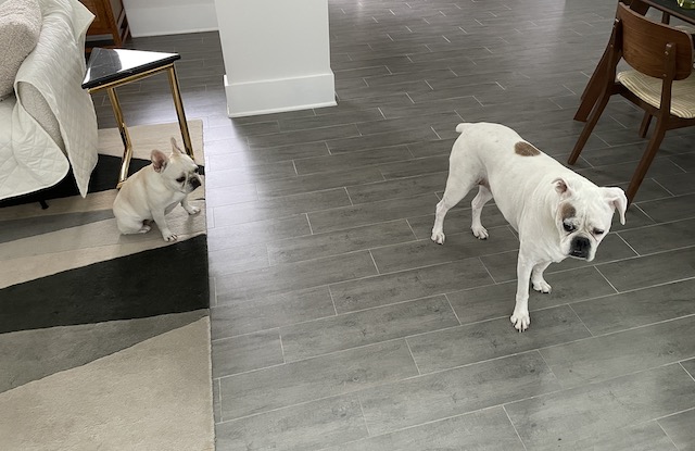 But you gotta love ‘em. I’ll find Daisy’s hair rolling down the hall like a tumbleweed. The return ducts suck it in as does the fan underneath the refrigerator. What a mess. But you gotta love ‘em…