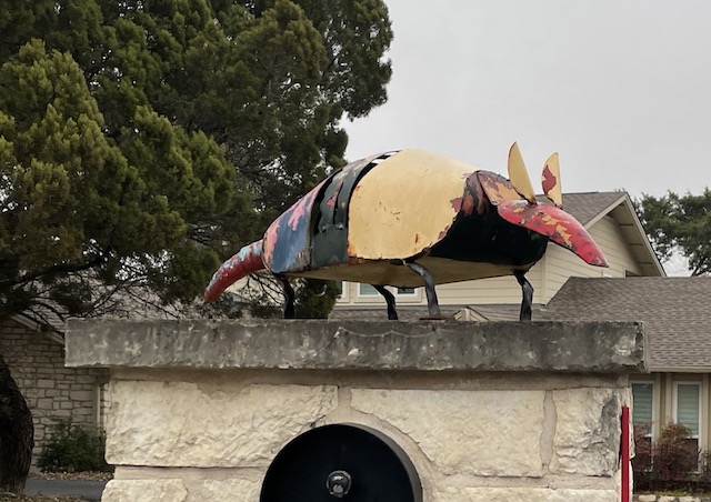 Our first stop is an armadillo we have seen before. He has a new sombrero and looks very distinguished.