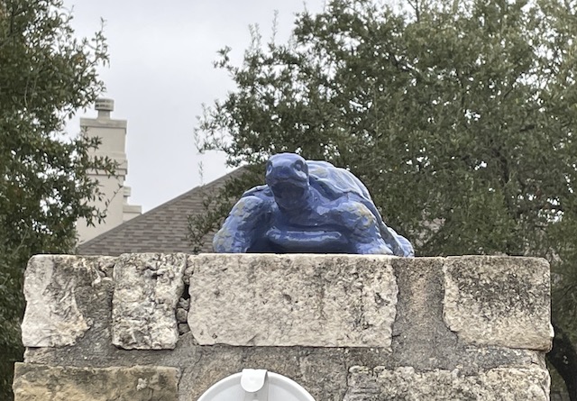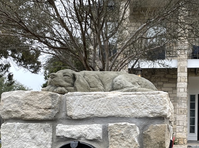 Here’s Bevo, the mascot of the University of Texas, in a different pose. I think the owner is upset at UT’s loss to Baylor that kept them out of this year’s Championship game (Which Baylor won against Oklahoma State.)