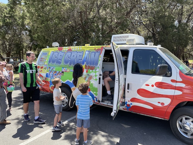 What fun! Books, ice cream, eggs, and prizes – and the weather looks perfect.