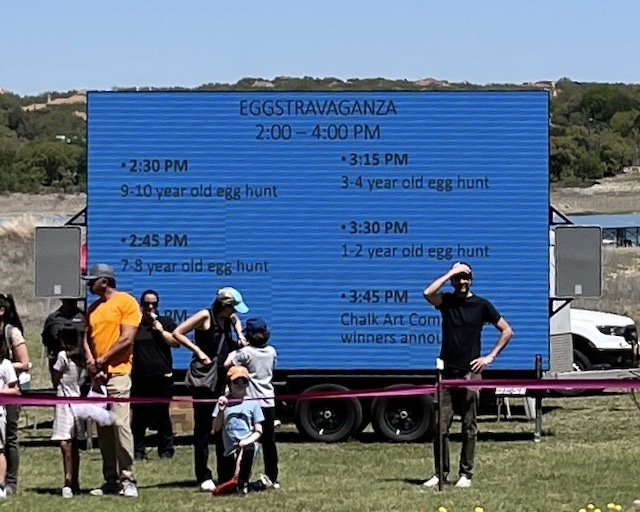 The new Park& Rec digital billboard. Has the schedule for the various age group egg hunts.