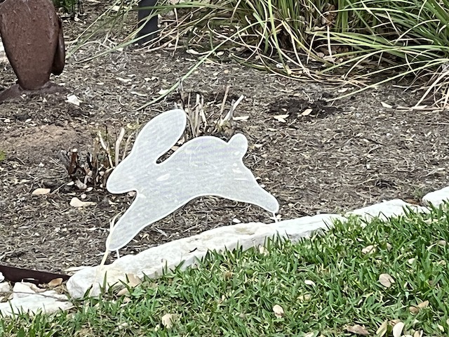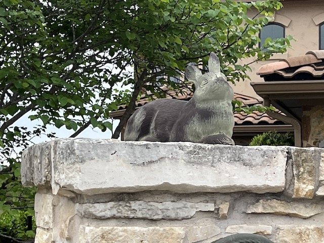 Another more philosophical bunny mailbox topper.