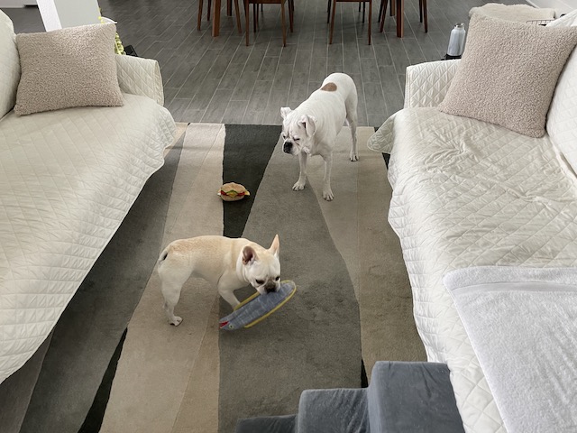Twiggy thinks she should have a new toy every day, so we have to find those that have some characteristics that keep up the interest. She loves eel and cheeseburger.