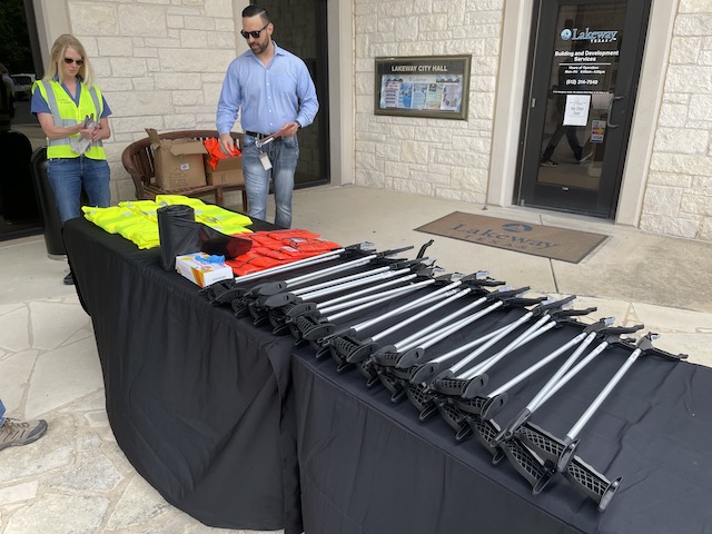 That’s a LOT of picker-uppers! I imagine they were expecting lots of volunteers. Looks like a cloudy day but a worthwhile venture. Thanks, Lakeway, for doing your part — and thanks, John, for letting us tag along!