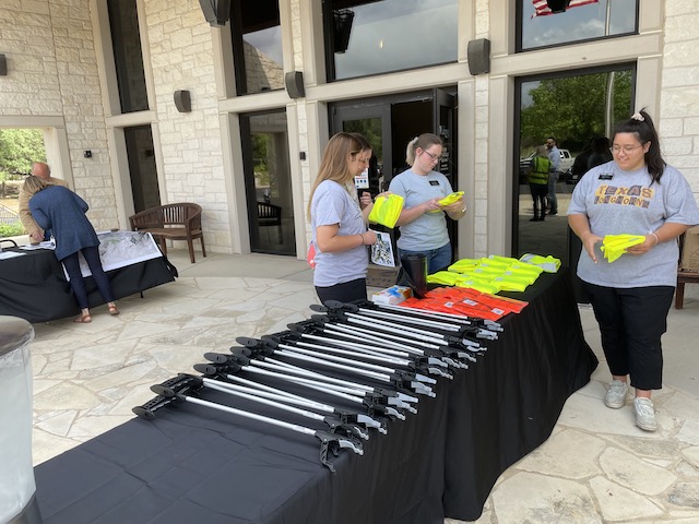 Here are the tools being supplied. Vests, Gloves, Trashbags and picker uppers (My term)