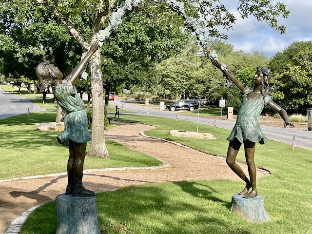 Lakeway city lines all the thoroughfares with flags. This is the sculpture garden.