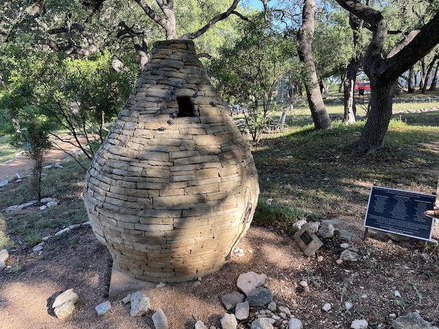 The town of Bee Cave was founded and named after a cave of bees that were in residence. The bee hive is symbolic and no bees live in there.