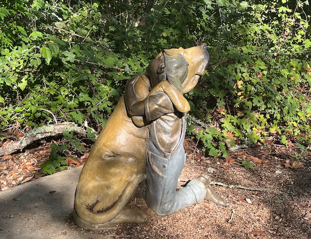 The boy and his dog is a bronze sculpture and very touching in person. Thanks, Robbie.