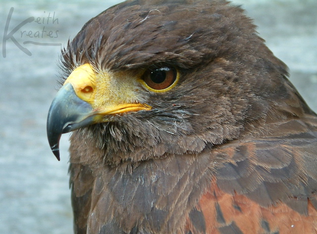 Ewww! I can’t believe that a blast of skunk junk to the face would make for a happy Harris’ Hawk. Nice one, John.