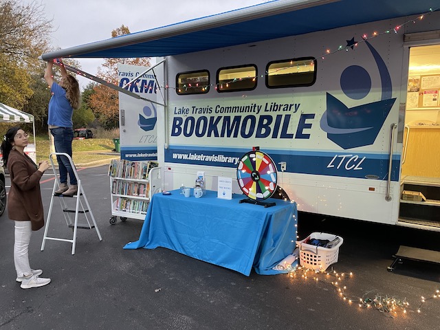 The bookmobile getting set up.