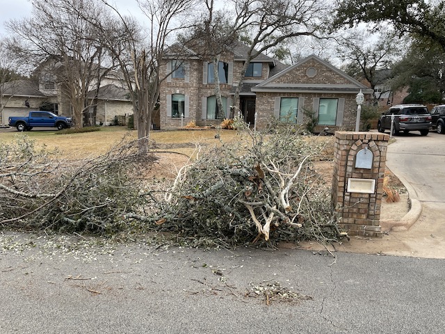 The oaks in my neighbor’s yard were on my roof and they popped back. Things are getting cleaned up. Thanks, Bruce.
