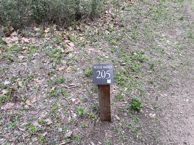 There is one of the markers. If we were paying attention and fell but couldn’t get up, we could tell the emergency crew that we had just passed marker 205. Makes it easy to find us.