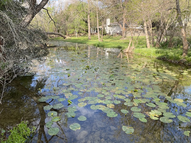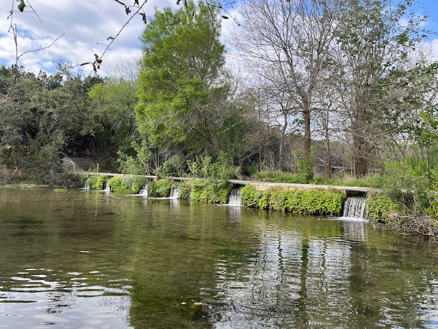 I love the bluebonnets, of course, but your photos of the lily pads and the spillway are fantastic! I can almost hear the water falling. Looks as if Spring is taking its sweet time there, too.