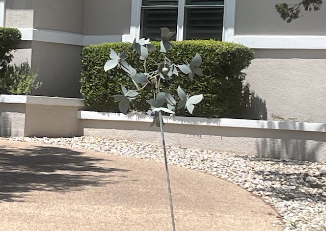 One of the more weird yard decorations. When the wind blows, there is an illusion of motion.