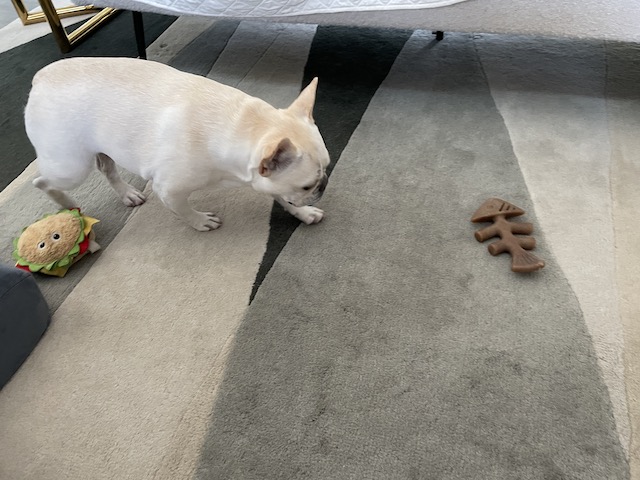 Lucy didn’t do much toy playing for the last few months. We didn’t toss anything so it could be her scent is here.