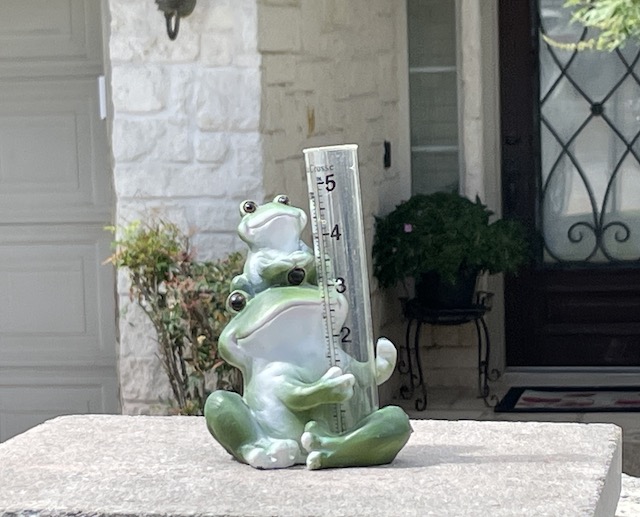 Froggy rain gauge. ( which has a useless aura about it, given our drought)