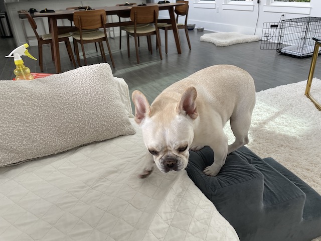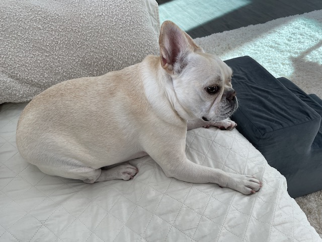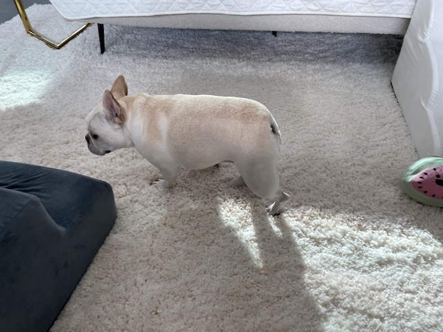 He’s a smart one. We have ceramic tile floors so that’s where Twiggy stretches out.