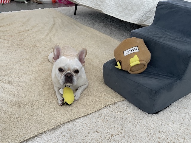 Twiggy is just a hoot and adorable, too. Did you help her with the bee? She’s a canine Winnie the Pooh!