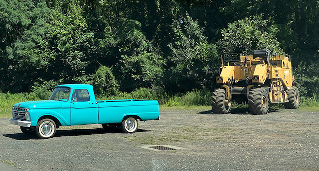 “Which one? The 1960 F100 pickup or the road grinder?”