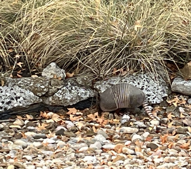 Wow, John. That’s quite the group of deer visiting your place. Those axis deer have really cool antlers. I’ve never seen an armadillo, though we visited our daughter and son-in-law who used to live south of Dallas several times. Wild things do make my heart sing. ❤