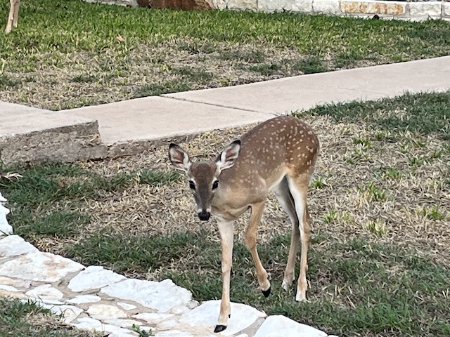 An Axis Deer chillin’ in the neighborhood. He always keeps his spots.