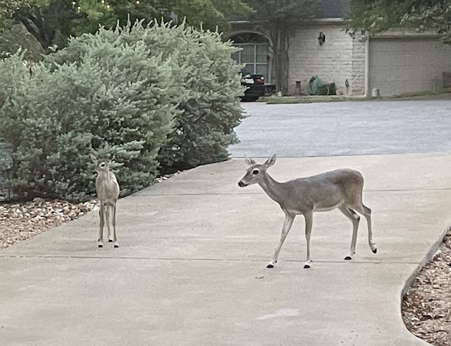 I hope I don’t have nightmares after reading this. That many deer in the garden would make for former garden. Throw in an armadillo ! I am glad we don’t have them up north. Fortunately we planted a squirrel amusement device. It is otherwise know as a black walnut tree. How the squirrels are able to gnaw through one still amazes me. It takes a fully equipped and experienced human 5 to 10 minutes to break one open. While the squirrels know where the zipper is located. It is walnut season now. They rain down, squirrel assisted on our covered picnic area. The shelled walnuts would just hurt. The rejects hit the roof like hand grenades and bounce. They just might take you right out ! Such a majestic tree. NUTS !!!