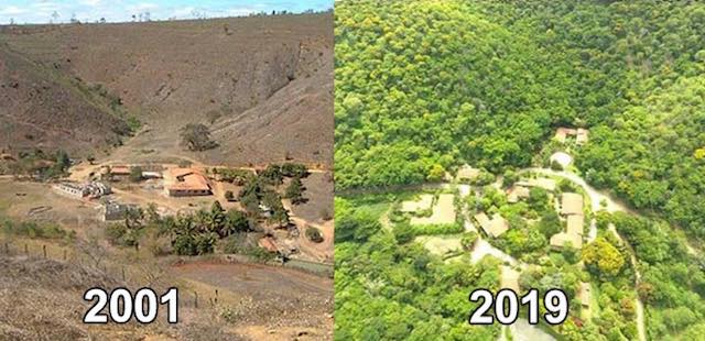 His work over long years saw him, his wife Lélia, and volunteers plant 20 million trees from 290 different species across over 1,500 acres of desiccated hillsides, recreating a natural forest ecosystem into which rare animals have now come to live.
