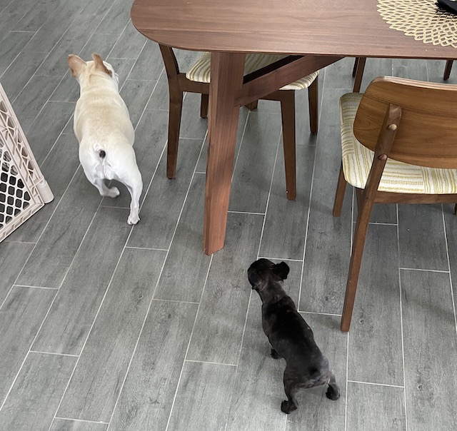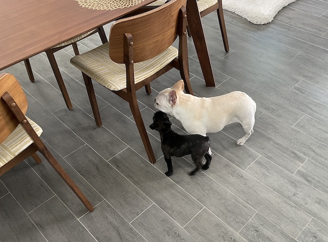 Our daughter’s doberman was over yesterday and she was not happy with Tempeste. A big growl gave Tempeste the hint to stay away.