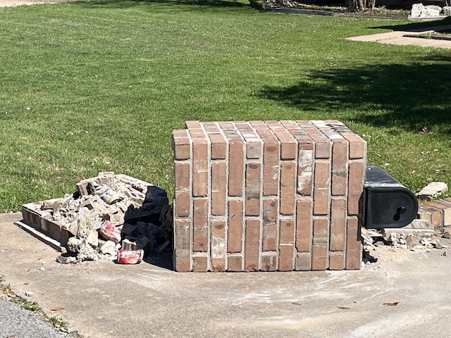 I never thought about whether a brick mailbox would be hollow until today – makes sense though – except when a car is backing into it!